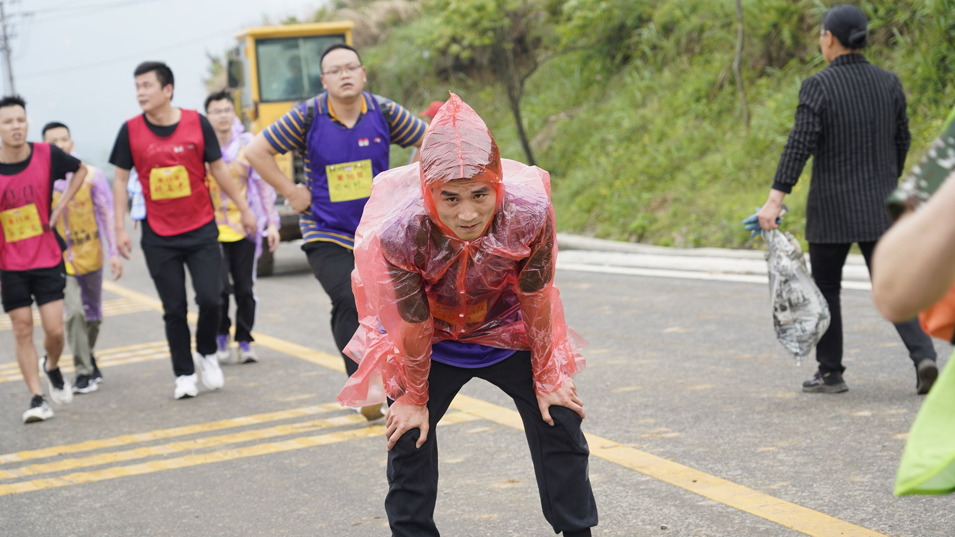 上午11时左右,临近山顶,天气已然变凉,不多时便是雨滴洒落,大家顶着恶劣的天气,坚毅的步伐勇往直前。