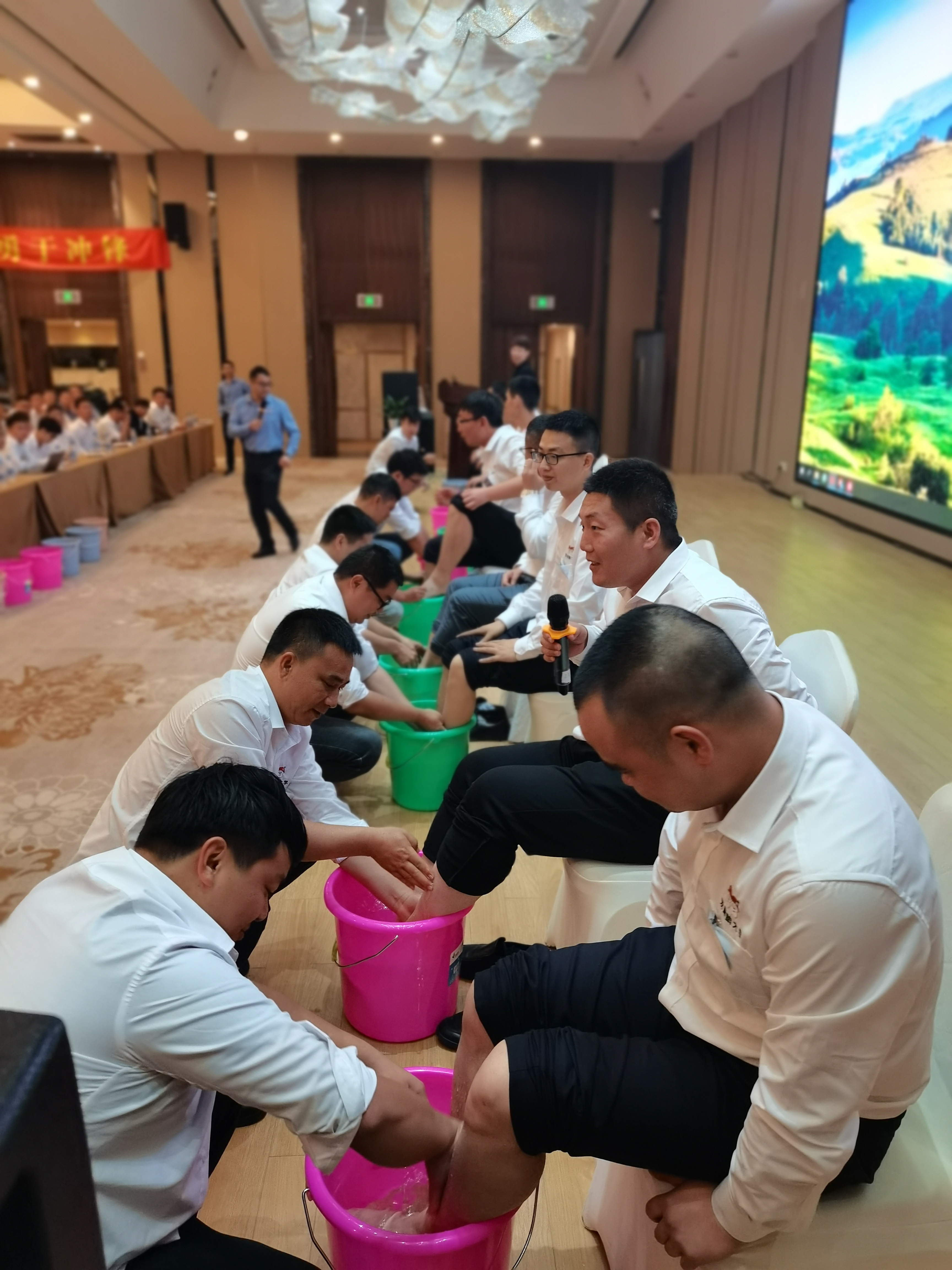 晚上8时许,根据徒步前签订的协议书,倒数一、二名小组为前两名小组成员洗脚。在履行承诺的过程中,前两名小组的成员与大家共享此刻感受,并对履行承诺的同事表示感谢。