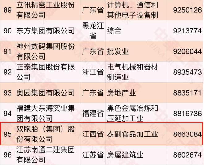 继中国企业500强榜单发布后,全国工商联在长沙发布了2021中国民营企业500强榜单。榜单显示,双胞胎集团位列第95,成为全国民企百强企业,在江西排第一位!