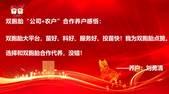 会上,赖总还分享了猪苗健康好养、饲料好长得快等“以养户为中心”的七大体现和提高正品上市率、降低料肉比等“帮助养户增收”的五大路径,帮助养户成功养猪,实现增收,欢迎更多志同道合的养户加盟双胞胎“公司+农户”合作代养。