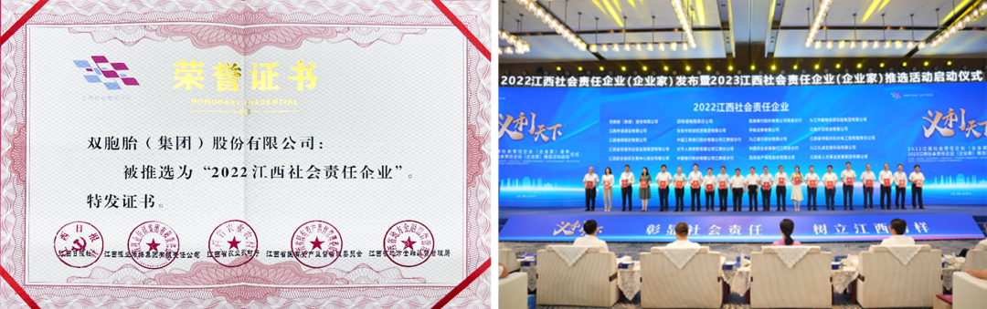 7月28日,由江西日报社(江西报业传媒集团)联合江西省农业农村厅、江西省国资委、江西省地方金融监管局共同举办的 2022年江西社会责任企业(企业家)发布会上,双胞胎集团荣获“2022年江西社会责任企业”荣誉称号。