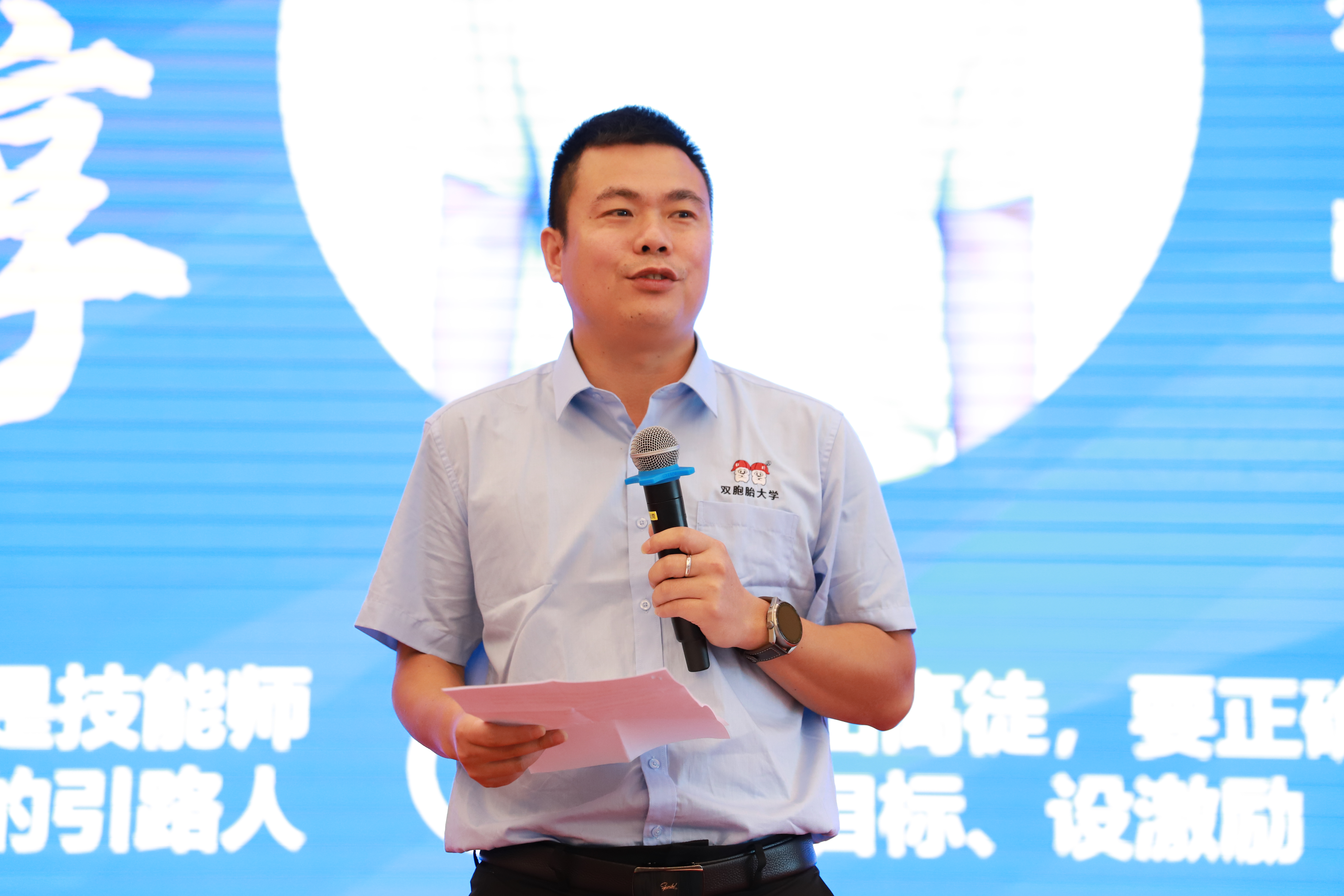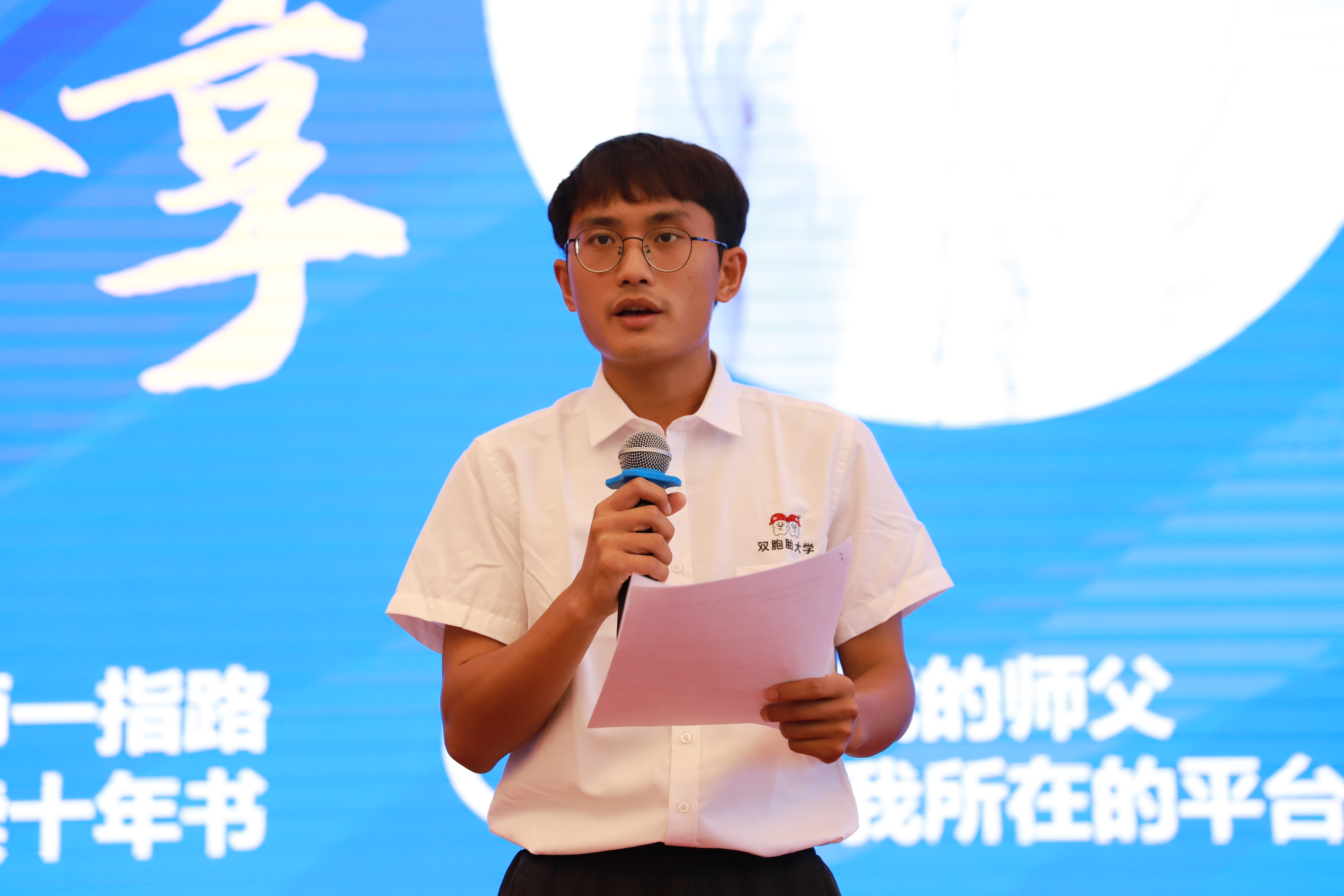 优秀徒弟姚学谱分享了他在师傅胡美净的带教下,不仅掌握了扎实的技术知识,更学会了如何与人相处、如何与养户相处、如何处理问题、如何承担责任。他感谢师傅们的关爱和支持,感谢师傅们传道和解惑,更表达了对集团的感谢,感谢集团师徒文化,感谢集团提供的广阔舞台!