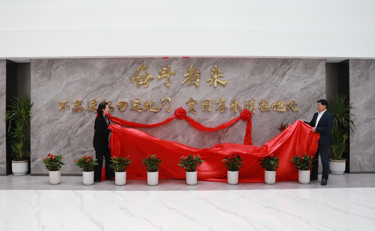 上午8:28,集团董事长、基地项目总负责人华涛总为集团人才培养学院揭校训墙。