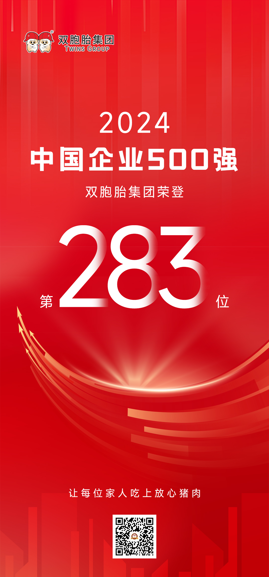 9月11日,中国企业联合会、中国企业家协会在天津召开2024中国500强企业高峰论坛全体大会,发布了2024中国企业500强相关榜单及其分析报告。双胞胎集团以2023年868亿的营业收入,位居中国企业500强榜单第283名,排名较去年提升4位!